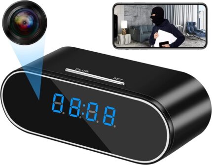 Wifi Table Clock Video Camera 1080p HD 2000mAh Battery Specifications:Pixel:1080p CMOSVideo Format: AVIVisual Angle:140 degreeMotion Detection: Camera ShootingCompressed Format:H.264Recording Range:5
